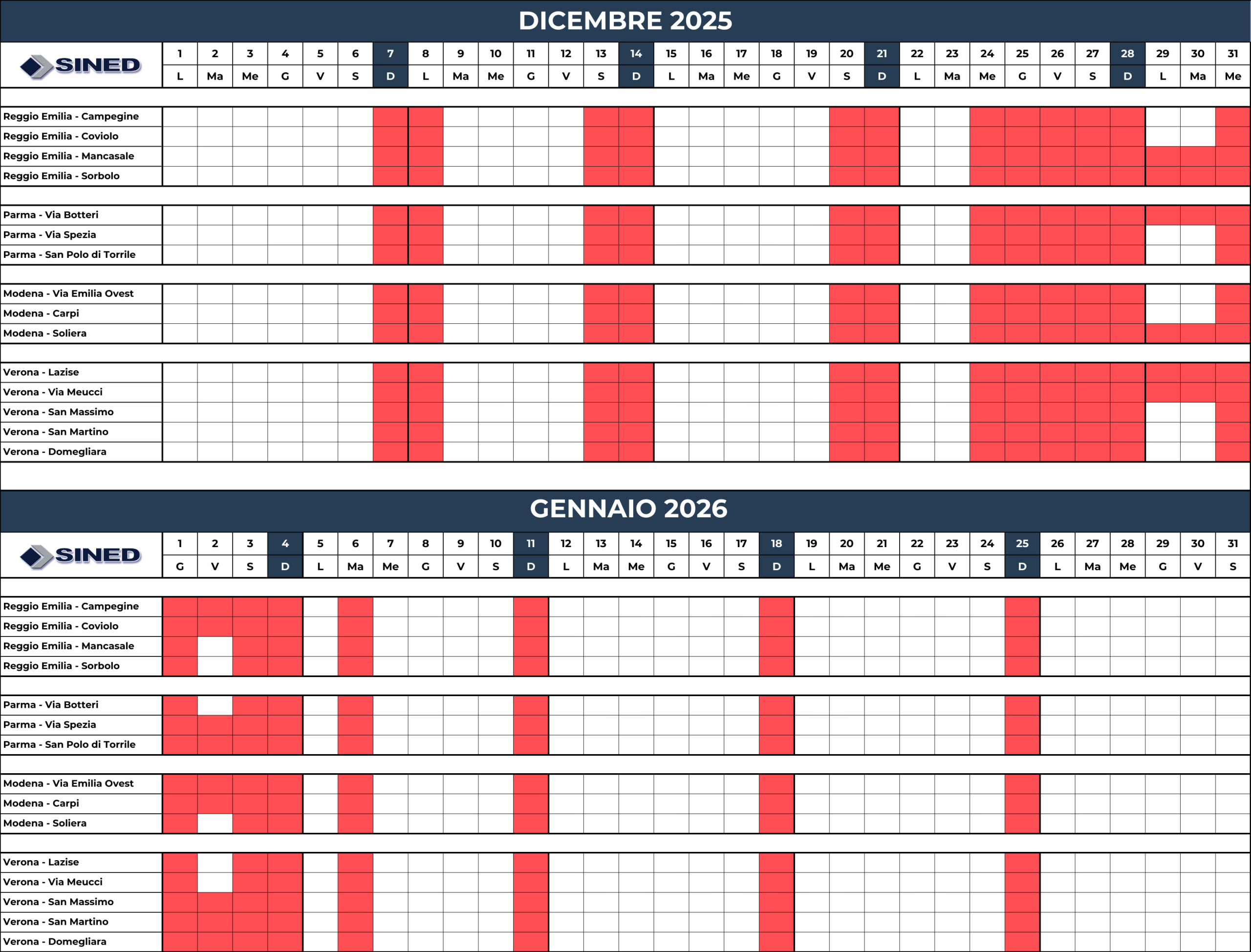 Chiusure Natale Sined 20252026